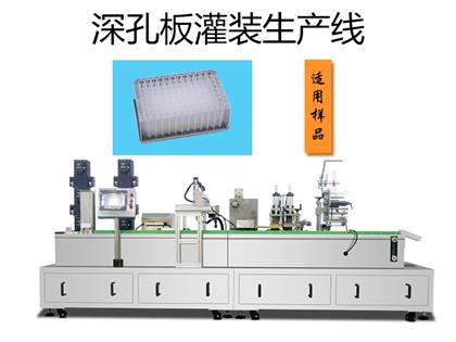 這是我們的96孔深孔板自動生產線,集上板,灌裝,檢測,封膜,切膜,貼標功能于一體,實現全自動化生產,每小時約900板左右,具有產量高,性能穩定,操作簡便等優點。